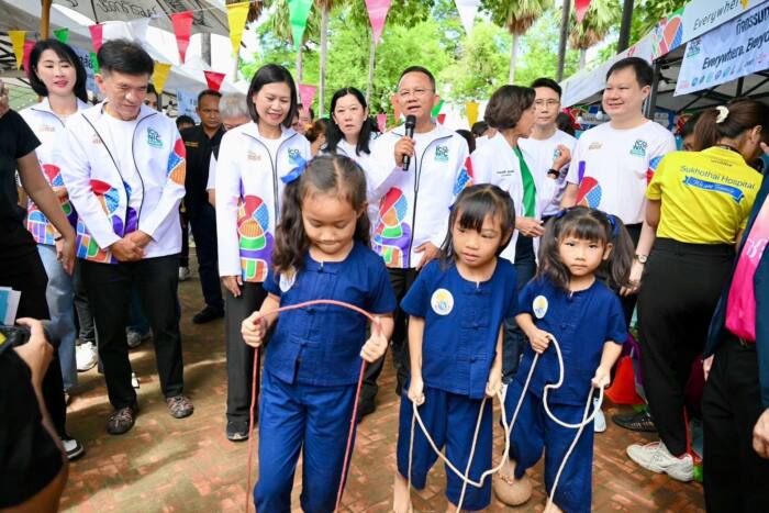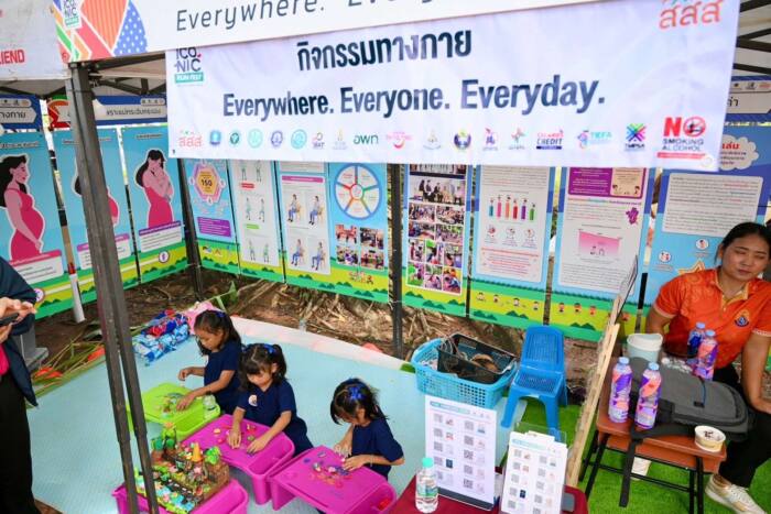นางประภาศรี บุญวิเศษ กรรมการกองทุนสนับสนุนการสร้างเสริมสุขภาพ (สสส.) กล่าวว่า สสส. มุ่งให้เกิดการเปลี่ยนแปลงประเด็นสุขภาพให้ทุกคนมีสุขภาพที่ดีทุกมิติอย่างต่อเนื่อง โดยเฉพาะการส่งเสริมกิจกรรมทางกายที่เพียงพอกลับเข้าสู่ภาวะปกติ โดยเน้นสร้างความตระหนักรู้ให้กับชุมชน สานพลังภาคีเครือข่ายรณรงค์สร้างความตระหนักการบริโภคอาหารตามหลักโภชนาการ ควบคู่กับการส่งเสริมกิจกรรมทางกาย ซึ่งจากรายงานสถานการณ์การมีกิจกรรมทางกายของประชากรไทยปี 2566 โดยศูนย์พัฒนาความรู้ด้านกิจกรรมทางกายประเทศไทย พบว่า โควิด-19 ทำให้อัตราการมีกิจกรรมทางกายลดลงจาก 74.6% ในปี 2562 เหลือ 54.3% ในปี 2563 และมีแนวโน้มเพิ่มขึ้นเป็น 62.0% ในปี 2565 และ 68.1% ในปี 2566 การจัดงานครั้งนี้ ถือเป็นการสร้างแนวทางและโอกาสเพิ่มอัตราของกิจกรรมทางกายในรูปแบบเทศกาลสร้างเสริมพฤติกรรมสุขภาพ ลดความเสี่ยงเกิดโรค NCDs ในอนาคต