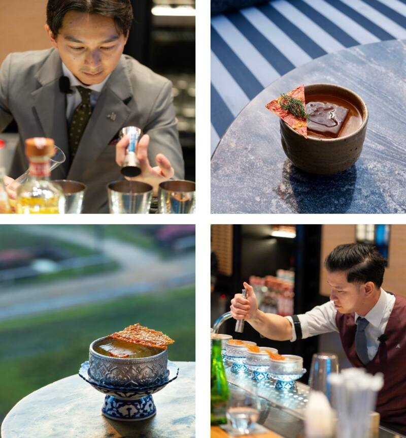สุรศักดิ์ ศรีทอง จาก โรงแรมเดอะ เซนต์ รีจิส กรุงเทพฯ และ ธีรวีร์ ปิยะเจียระไน จาก โรงแรมแบงค็อก แมริออท มาร์คีส์ ควีนส์ปาร์ค ผู้ชนะจากการแข่งขันรังสรรค์เครื่องดื่มที่มีนวัตกรรมและคำนึงถึงสิ่งแวดล้อม ในประเทศไทยและเวียดนาม