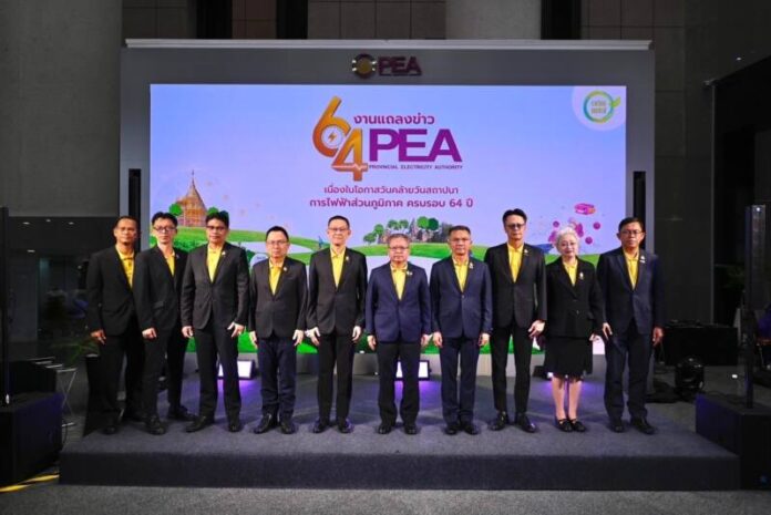วันที่ 11 กันยายน 2567 นายศุภชัย เอกอุ่น ผู้ว่าการการไฟฟ้าส่วนภูมิภาค แถลงผลการดำเนินงาน เนื่องในโอกาสการไฟฟ้าส่วนภูมิภาคครบรอบ 64 ปี 28 กันยายน 2567 โดยมีผู้บริหาร และ พนักงาน ร่วมงานแถลงข่าว ณ ห้องโถง ชั้น 1 อาคาร 4 สำนักงานใหญ่ การไฟฟ้าส่วนภูมิภาค เส้นทาง 64 ปี ของการไฟฟ้าส่วนภูมิภาค (PEA) เริ่มต้นจากการบุกเบิกนำไฟฟ้าสู่ประชาชน เร่งรัดพัฒนาไฟฟ้าสู่ชนบท ส่งเสริมความเจริญสู่ภาคธุรกิจและอุตสาหกรรมจนสามารถขยายเขตระบบจำหน่ายไฟฟ้าให้บริการประชาชนอย่างทั่วถึงในพื้นที่รับผิดชอบ 74 จังหวัดทั่วประเทศ (ยกเว้น กรุงเทพมหานคร นนทบุรี สมุทรปราการ)  นำเทคโนโลยีมาพัฒนาการดำเนินงานเพื่อยกระดับมาตรฐานระบบส่งจ่ายพลังงานไฟฟ้าและการบริการให้สามารถแข่งขันเชิงธุรกิจในระดับสากล มุ่งสู่องค์กรที่เป็นเลิศด้านธุรกิจพลังงานไฟฟ้า ร่วมสร้างคุณค่าสู่สังคมและสิ่งแวดล้อมด้วยเทคโนโลยีดิจิทัล ขับเคลื่อนองค์กรสู่ PEA Digital Utility และยังคงเดินหน้าบริหารจัดการพลังงานไฟฟ้าให้มีประสิทธิภาพด้วยระบบไฟฟ้าอัจฉริยะ เป็นมิตรต่อสิ่งแวดล้อมอยู่คู่กับชุมชนอย่างยั่งยืน ตามวิสัยทัศน์ “ไฟฟ้าอัจฉริยะ เพื่อคุณภาพชีวิตที่ดีอย่างยั่งยืน” (Smart Energy for Better Life and Sustainability) 64 ปี แห่งการพัฒนาพลังงานเพื่อสังคมไทย สู่อนาคตที่ยั่งยืนด้วยพลังงานสะอาด