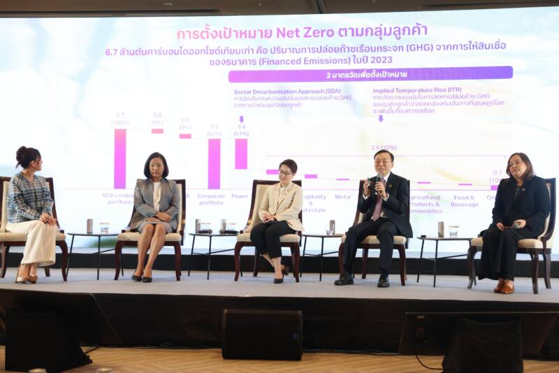 ขณะเดียวกันยังมีการเสวนาหัวข้อ “ความยั่งยืนของภาคธุรกิจ: จากทางเลือกสู่ทางรอด” โดยตัวแทนภาคเอกชนมาแบ่งปันวิสัยทัศน์ด้านความยั่งยืนที่ชัดเจน กลยุทธที่ปฏิบัติได้จริง ได้แก่ นางต้องใจ ธนะชานันท์ รองกรรมการผู้อำนวยการใหญ่ ผู้บริหารสูงสุดกลุ่มงานความยั่งยืนและกลยุทธ์ บริษัท ไทยเบฟเวอเรจ จํากัด (มหาชน) นางสุศมา ปิตากุลดิลก ผู้ช่วยกรรมการผู้จัดการใหญ่ สายงานความยั่งยืนและบริหารผู้มีส่วนได้ส่วนเสีย บริษัท ปตท. สำรวจและผลิตปิโตรเลียม จำกัด (มหาชน) ดร.ยรรยง ไทยเจริญ รองผู้จัดการใหญ่อาวุโส ประธานเจ้าหน้าที่บริหารกลุ่มธุรกิจ Wealth และประธานคณะกรรมการขับเคลื่อนด้านความยั่งยืน ธนาคารไทยพาณิชย์ จำกัด (มหาชน) และ นางสุมลรัตน์ ทวีกิจ ผู้อำนวยการฝ่ายวางแผนองค์กร บริษัท ยูนิชาร์ม (ประเทศไทย) จำกัด
