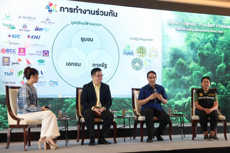 ภายในงานยังพูดถึงการพัฒนาคุณภาพชีวิตของชุมชนควบคู่กับการฟื้นฟูและอนุรักษ์ป่าชุมชนภายใต้โครงการจัดการคาร์บอนเครดิตในป่าเพื่อการพัฒนาที่ยั่งยืน ซึ่งให้ผลพลอยได้เป็นคาร์บอนเครดิตที่สร้างประโยชน์ต่อเศรษฐกิจ สังคม และสิ่งแวดล้อมไปพร้อมกัน โดยมีผู้ร่วมเสวนา ได้แก่ นายรองเพชร บุญช่วยดี รองผู้อำนวยการ องค์การบริหารจัดการก๊าซเรือนกระจก (องค์การมหาชน) หรือ อบก. นายสมิทธิ หาเรือนพืชน์ ผู้อำนวยการฝ่ายสนับสนุนการปฏิบัติงานพิเศษ มูลนิธิแม่ฟ้าหลวงฯ และ นางปราณี ราชคมน์ ประธานเครือข่ายป่าชุมชน อำเภอพาน จังหวัดเชียงราย