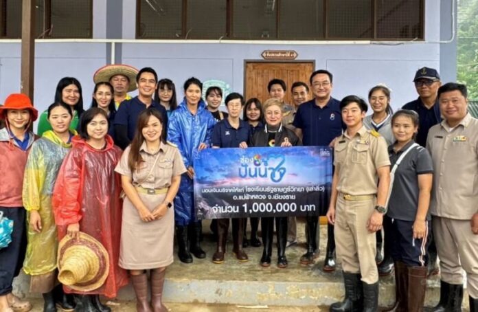 2.โรงเรียนรัฐราษฎร์วิทยา (เล่าลิ่ว) อ.แม่ฟ้าหลวง จังหวัดเชียงราย จำนวน 1,000,000 บาท เพื่อสร้างกำแพงรั้วโรงเรียนใหม่ หลังพังทลายจากเหตุอุทกภัยน้ำท่วม และเพื่อความปลอดภัยจากเหตุอุทกภัยที่อาจจะเกิดขึ้นในครั้งหน้า โดยมีคุณมัญชุสา เพ็ชรชนะ ผู้อำนวยการโรงเรียนรัฐราษฎร์วิทยา เป็นผู้รับมอบ
