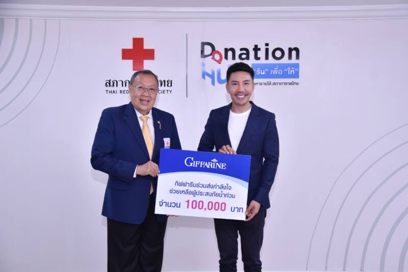 นายพงศ์พสุ อุณาพรหม รองกรรมการผู้จัดการ และประธานเจ้าหน้าที่เพื่อการเติบโตองค์กร บริษัท กิฟฟารีน สกายไลน์ ยูนิตี้ จำกัด กล่าวว่า จากสถานการณ์น้ำท่วมทั้งภาคเหนือ ภาคอีสาน และภาคใต้ที่เกิดขึ้น กิฟฟารีน ในฐานะบริษัทฯ ของคนไทย ที่มีฐานลูกค้าและนักธุรกิจกิฟฟารีนกระจายอยู่ทั่วประเทศ มีความเป็นห่วง โดยอยากขอเป็นส่วนหนึ่งในการช่วยเหลือผู้ประสบภัยทุกๆ ภาคด้วย ล่าสุดได้เข้ามอบเงินสมทบทุน “โครงการช่วยเหลือผู้ประสบอุทกภัย” สภากาชาดไทย จำนวน 100,000 บาท โดยคุณขรรย์ ประจวบเหมาะ ผู้อำนวยการสภากาชาดไทย ให้เกียรติรับมอบ ณ สำนักงานจัดหารายได้ สภากาชาดไทย