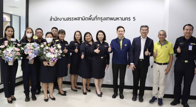 เมื่อวันที่ 8 ตุลาคม 2567 ดร.นาฬิกอติภัค แสงสนิท กรรมการผู้จัดการ บริษัท ธนารักษ์พัฒนาสินทรัพย์ จำกัด หรือ DAD Asset Development พร้อมคณะผู้บริหาร เข้าให้การต้อนรับและแสดงความยินดีเนื่องในโอกาสสำนักงานสรรพสามิตพื้นที่กรุงเทพมหานคร 5 ย้ายเข้าพื้นที่ ณ สำนักงานแห่งใหม่ ซึ่งตั้งอยู่ในอาคาร C ศูนย์ราชการเฉลิมพระเกียรติฯ แจ้งวัฒนะ โดยมี นางอรสา ทองบุญรอด สรรพสามิตพื้นที่กรุงเทพมหานคร 5 และคณะ รับมอบแจกันดอกไม้ ณ ชั้น 1 อาคาร C ศูนย์ราชการเฉลิมพระเกียรติฯ แจ้งวัฒนะ
