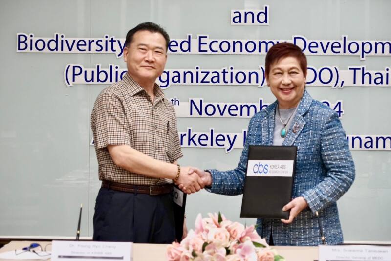 นางสุวรรณา เตียรถ์สุวรรณ ผู้อำนวยการสำนักงานพัฒนาเศรษฐกิจจากฐานชีวภาพ (องค์การมหาชน) หรือ BEDO ประเทศไทย ได้ลงนามบันทึกการหารือความร่วมมือ (Record of Discussion) กับ ดร.ยอง ฮโย ชาง ผู้อำนวยการหน่วยงาน ABS Research Support Center, Korea Research Institute of Bioscience and Biotechnology (KRIBB ABS) แห่งประเทศเกาหลีใต้ เพื่อส่งเสริมความร่วมมือในการแลกเปลี่ยนข้อมูลด้านการเข้าถึงและการแบ่งปันผลประโยชน์ (Access and Benefit-Sharing: ABS) ณ โรงแรมเดอะ เบอร์เคลีย์ ประตูน้ำ กรุงเทพมหานคร