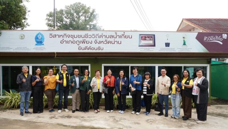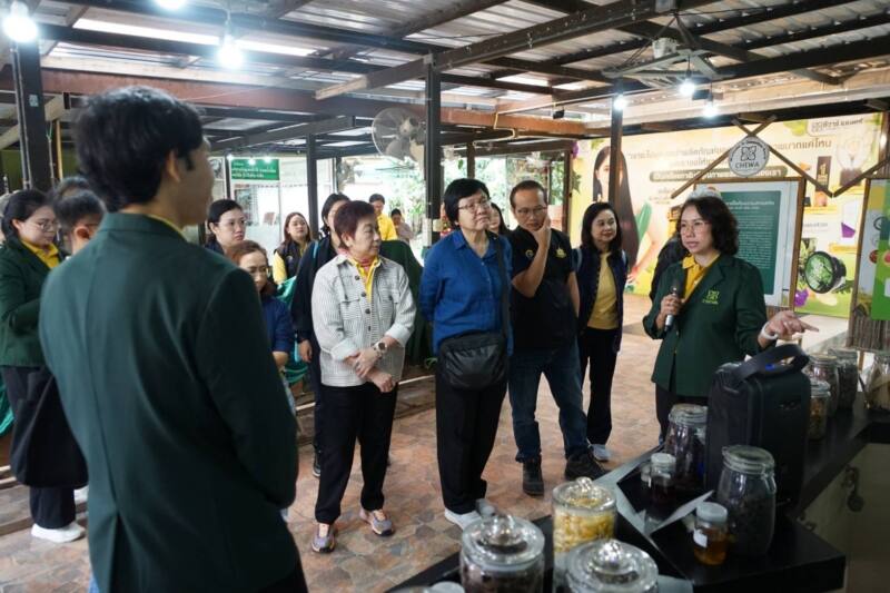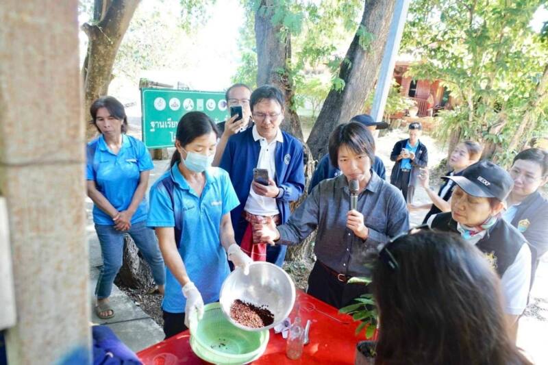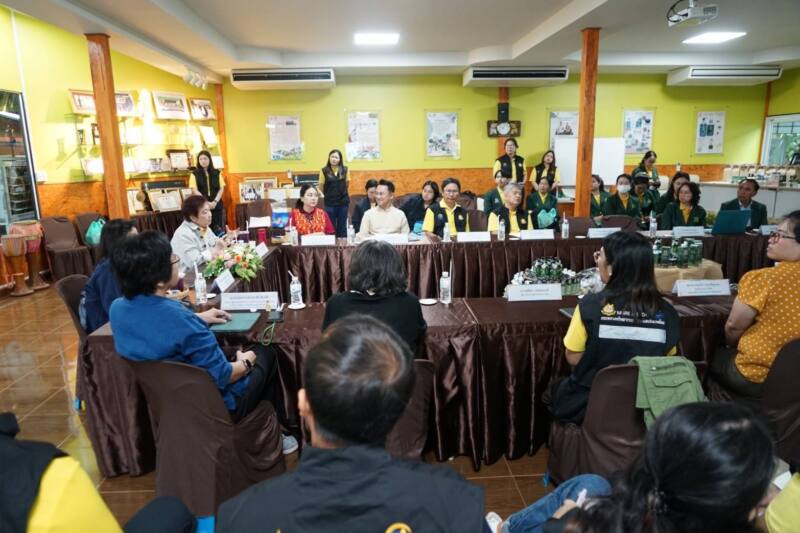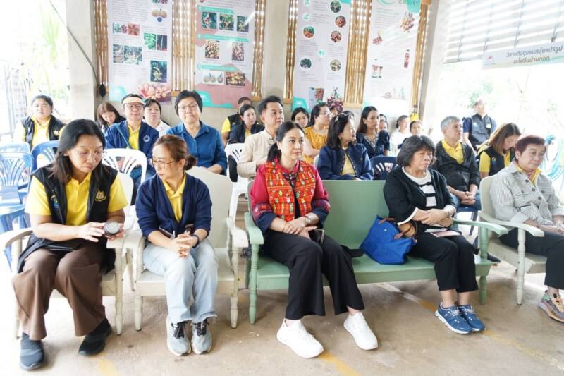 ต่อมาในวันที่ 17 ธันวาคม 2567 นางสุวรรณา เตียรถ์สุวรรณ ผู้อำนวยการ BEDO พร้อมด้วย ดร.ธนิต ชังถาวร ที่ปรึกษา BEDO คณะผู้บริหาร และเจ้าหน้าที่ BEDO พาคณะกรรมการ BEDO ได้แก่ รองศาสตราจารย์ ดร.สิรี ชัยเสรี ดร.รวีวรรณ ภูริเดช ศาสตราจารย์ ดร.ศันสนีย์ ไชยโรจน์ และ นางรัตนา เล็งศิริวัฒน์ เยี่ยมชมการดำเนินงานเยี่ยมชมการดำเนินงานต่อยอดโครงการเห็ดไมคอร์ไรซา ณ วิสาหกิจชุมชนผลิตหัวเชื้อเห็ดไมคอร์ไรซาและพืชเศรษฐกิจ บ้านบุญแจ่ม ตำบลน้ำเลา อำเภอร้องกวาง จังหวัดแพร่ โดยมี นายจิรพัฒน์ แจ่มรัตนโสภิณ ประธานศูนย์เรียนรู้ชุมชนบ้านบุญแจ่ม นายนพพร มิ่งสุวรรณ ประธานวิสาหกิจชุมชนฯ และสมาชิกวิสาหกิจชุมชนฯ ให้การต้อนรับ และพาเยี่ยมชมแปลงต้นแบบการปลูกพืชแบบวนเกษตรอินทรีย์ร่วมกับการเพาะเห็ดไมคอร์ไรซา