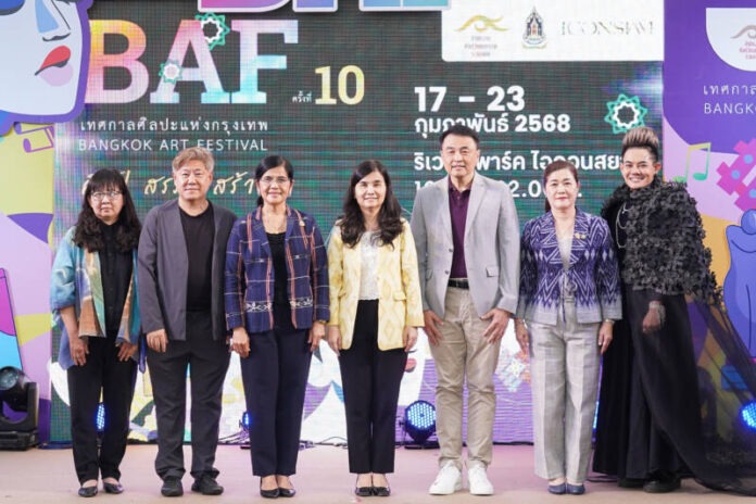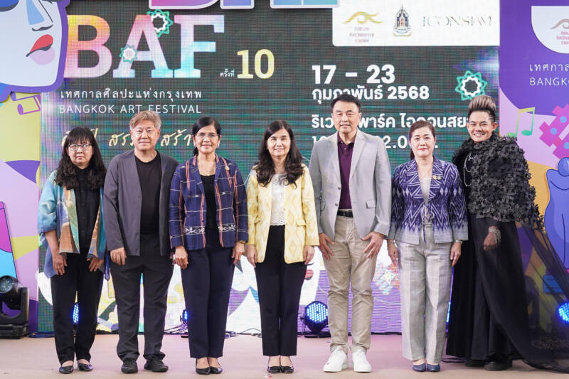 ยุถิกา อิศรางกูร ณ อยุธยา รองปลัดกระทรวงวัฒนธรรม เป็นประธานเปิดเทศกาลศิลปะแห่งกรุงเทพ Bangkok Art Festival (BAF) ครั้งที่ 10 เพื่อยกระดับงานศิลปะร่วมสมัย ศิลปินและนักออกแบบไทย อาทิ ศิลปินศิลปาธร ศิลปินร่วมสมัย นักออกแบบผลิตภัณฑ์สร้างสรรค์ เครือข่ายด้านศิลปวัฒนธรรมร่วมสมัยทั่วประเทศ เพื่อเปิดโอกาสให้บุคลากรสร้างสรรค์มีพื้นที่ในการเผยแพร่ จัดแสดง และจำหน่ายผลงานของตนเอง เพื่อส่งเสริมอัตลักษณ์ไทยและความเป็นไทย พัฒนาความคิดสร้างสรรค์ และสนับสนุนให้คนไทยสามารถนำทุนทางวัฒนธรรมมาสร้างรายได้ และต่อยอดสู่เวทีนานาชาติต่อไปได้ โดยภายในงานพบกับกิจกรรมการสาธิตงานศิลปะร่วมสมัย (Workshop) การแสดงจากคณะนักแสดงศิลปะร่วมสมัย สาขาศิลปะการแสดง ประยุกต์ศิลป์ นาฏศิลป์ และคณะดนตรี พร้อมทั้งมีการจำหน่ายสินค้าจากเครือข่ายมากมายระหว่างวันที่ 17-23 กุมภาพันธ์ 2568 โดยมีเกษร กำเหนิดเพ็ชร, ไพรัช วิเศษศิริลักษณ์, วราพรรณ ชัยชนะศิริ, ศิริศักดิ์ คชพัชรินทร์, กาญจนา ตุ้มกลีบ, ธชย ประทุมวรรณ ร่วมงาน ณ ริเวอร์ พาร์ค ไอคอนสยาม