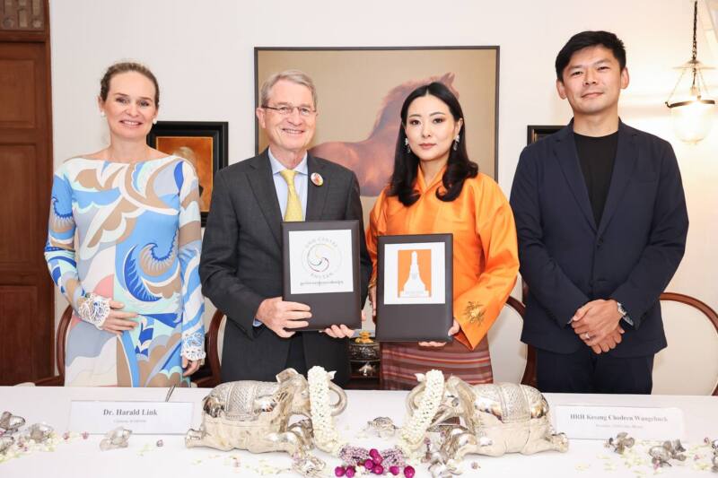 เจ้าหญิงเคเซง โชเดน วังชุก แห่งศูนย์ความสุขมวลรวมประชาชาติ ประเทศภูฏาน (Gross National Happiness Centre Bhutan) ร่วมกับ ดร. ฮาราลด์ ลิงค์ ประธาน บี.กริม และคุณคาโรลีน ลิงค์ ประธานกรรมการ บริษัท บี.กริม จอยน์ เว็นเจอร์ โฮลดิ้ง จำกัด ร่วมลงนามบันทึกข้อตกลง (MOU) ต่อยอดความร่วมมือเพื่อส่งเสริมและสะท้อนถึงความมุ่งมั่นในการนำหลักการของความสุขมวลรวมประชาชาติมาปรับใช้ในวัฒนธรรมองค์กร เสริมสร้างความเป็นอยู่ที่ดี และสนับสนุนการมีส่วนร่วมที่มีคุณค่า เมื่อวันที่ 10 มีนาคม 2568
