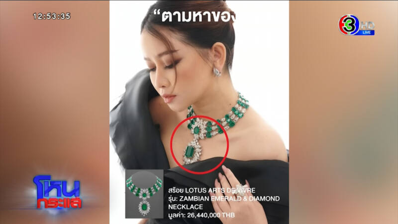 เมย์ : เป็นสร้อยมรกตค่ะ มันเป็นแบรนด์ ถ้าคนเล่นไฮจิวเวลรี่จะรู้ว่ามันไฮคอนนิก เส้นนี้เมย์ประมูลมา มันมีแค่ชิ้นเดียวในโลก