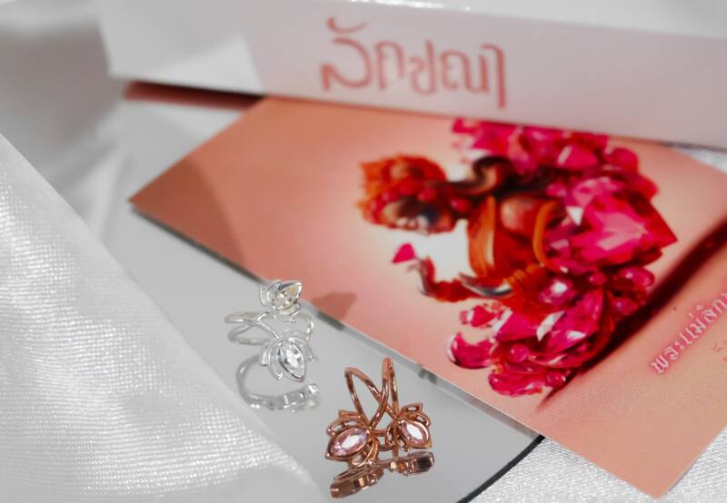 นอกจากต่างหูแล้วก็จะมีกำไลพระแม่ลักษมี ซึ่งดีไซน์ออกมาเป็นรูปดอกบัว มีทั้ง Pink gold และ White Gold เช่นกันกับต่างหู ใส่ได้ทั้งผู้หญิงและผู้ชาย หลายคนที่ได้ไปบูชาไปแล้วกลับมาบอกเป็นเสียงเดียวกันว่าปังมาก อีกหนึ่งอย่างที่อุ้มอยากแนะนำก็คือน้ำหอม สำหรับบางคนที่ไม่สะดวกจุดกำยาน ก็สามารถบูชาน้ำหอมนำกลับไปฉีดหรือพรมที่องค์เทพได้ หรือ อาจจะซื้อถวาย และนำกลับมาฉีดตัวเพื่อให้เสริมสิริมงคล สร้างสเน่ห์ให้ตัวเองก็ได้เช่นกันค่ะ เครื่องประดับของแบรนด์ลักขณานอกจากจะช่วยเติมเต็มลุคให้สวยแล้ว ยังเสริมความมั่นใจให้กับผู้ใส่ เป็นอีกไอเทมที่ช่วยเสริมโชคด้านต่างๆ ทั้งเรื่องการงาน การเงิน ความรักด้วยค่ะ