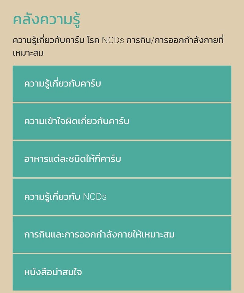 “นับคาร์บ.com” ตัวช่วยกระตุ้นสังคมสุขภาวะลดเสี่ยง NCDs สสส. สานพลัง สธ. เดินหน้ารวบรวมคลังความรู้เรื่องคาร์โบไฮเดรต พร้อมโปรแกรมชวนคนไทยนับคาร์บง่ายๆ แค่ 3 ขั้นตอน กรอกข้อมูลส่วนตัว-กดปุ่มคำนวณ-รับผล 5 ด้าน พร้อมแนะเมนูคาร์บต่ำที่เหมาะสมรายบุคคล