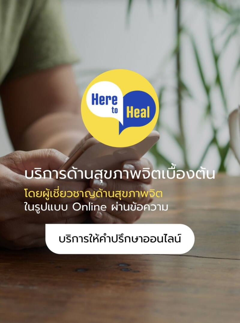 หากท่านต้องการความช่วยเหลือจากผู้เชี่ยว ชาญด้านสุขภาพจิต สามารถเข้าถึงบริการด้านสุขภาพจิตเบื้องต้นผ่านระบบแชทออนไลน์ Here 2 Heal ไม่มีค่าใช้จ่าย ได้ที่ http://here2healproject.com/