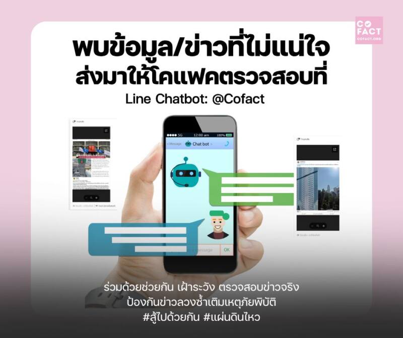สสส.-โคแฟค เตือนประชาชน ระวังมิจฉาชีพส่ง SMS ดูดข้อมูลส่วนตัว-อย่าหลงเชื่อข่าวปลอมบนออนไลน์อ้างเหตุการณ์แผ่นดินไหว หลังพบ ภายใน 24 ชั่วโมง ประชาชนแห่ตรวจข่าวลวงเหตุการณ์ภัยพิบัติพุ่ง 7,832 ราย ชวนทุกคนใช้แพลตฟอร์ม “cofact” ตรวจสอบข่าวให้ชัวร์ ก่อนแชร์ พร้อมแนะนำคาถา “อย่าเพิ่งเชื่อ อย่าเพิ่งแชร์ อย่าเพิ่งโอน” ป้องกันไม่ตกเป็นเหยื่อมิจฉาชีพ