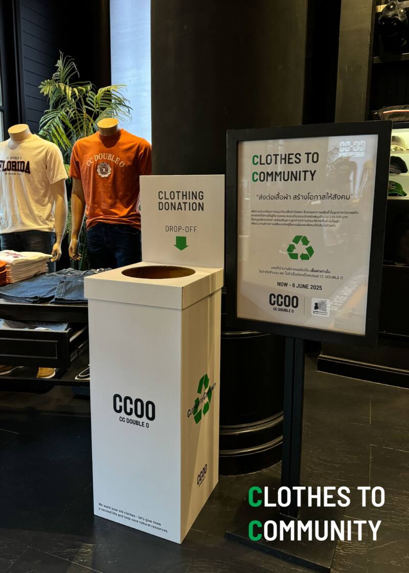 CC DOUBLE O (ซีซี ดับเบิล โอ) แบรนด์แฟชั่นที่สะท้อนแนวคิด Casual Confidence ความเรียบง่ายที่สะท้อนความมั่นใจ กับทุกสไตล์ของคุณ เปิดตัวแคมเปญ “CLOTHES TO COMMUNITY” ส่งต่อเสื้อผ้า สร้างโอกาสให้สังคม ขอเป็นส่วนหนึ่งในพลังการขับเคลื่อนหมุนเวียนเสื้อผ้ามือสองเพื่อนำกลับมาใช้ใหม่ พร้อมทั้งส่งต่อโอกาสให้กับผู้ที่ขาดแคลนในสังคม โดยการเปิดรับบริจาคเสื้อผ้าที่ไม่ใช้แล้วไม่จำกัดแบรนด์ ไม่จำกัดจำนวน นำมารวบรวมเพื่อคัดแยกก่อนส่งต่อโอกาสผ่าน มูลนิธิกระจกเงา