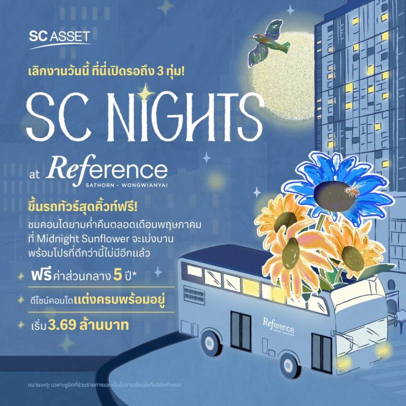 มาหลีกหนีความวุ่นวายหลังเลิกงานแล้วโดดขึ้น “รถบัสทานตะวันเที่ยงคืน”  สัมผัสประสบการณ์การเยี่ยมชมโครงการคอนโดในยามค่ำคืนกับ “SC Nights at Reference Sathorn-Wongwianyai” ตั้งแต่วันที่ 16–31 พฤษภาคม 68 ได้ถึงเวลา 21.00 น. ที่โครงการ เรฟเฟอเรนซ์ สาทร – วงเวียนใหญ่ (Reference Sathorn-Wongwianyai) คอนโดแต่งครบพร้อมอยู่ ในราคาเริ่มต้น 3.69 ล้านบาท* พร้อมวิวแม่น้ำเจ้าพระยาสุดโรแมนติก ที่ Midnight Sunflower จะเบ่งบาน เปลี่ยนมุมมองของการดูคอนโดให้แตกต่างอย่างมีสไตล์ มาพร้อมโปรโมชั่นสุดเร้าใจ อาทิ