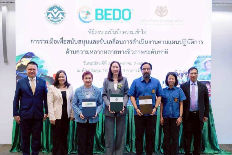 สผ. สพภ. มฟล. ร่วมลงนาม MOU เพื่อเร่งขับเคลื่อนการดำเนินงานตามแผนปฏิบัติการ ด้านความหลากหลายทางชีวภาพระดับชาติสู่ระดับพื้นที่