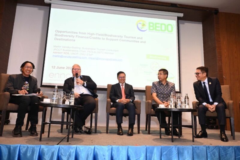 เมื่อวันที่ 12 มิถุนายน 2568 สำนักงานพัฒนาเศรษฐกิจจากฐานชีวภาพ (องค์การมหาชน) หรือ BEDO จัดการประชุมเสวนาแลกเปลี่ยนความรู้ในประเทศและระหว่างประเทศ เรื่องการขับเคลื่อนการท่องเที่ยวยั่งยืน บนพื้นฐานความหลากหลายทางชีวภาพเพื่อการพัฒนาเศรษฐกิจชุมชน โดยมีผู้บริหาร BEDO นักวิชาการ ผู้เชี่ยวชาญทั้งในและต่างประเทศ ตัวแทนชุมชนท่องเที่ยว และสื่อมวลชน เข้าร่วมงาน ณ โรงแรมเซ็นทาราไลฟ์ ศูนย์ราชการและคอนเวนชันเซ็นเตอร์ ถนนแจ้งวัฒนะ กรุงเทพฯ