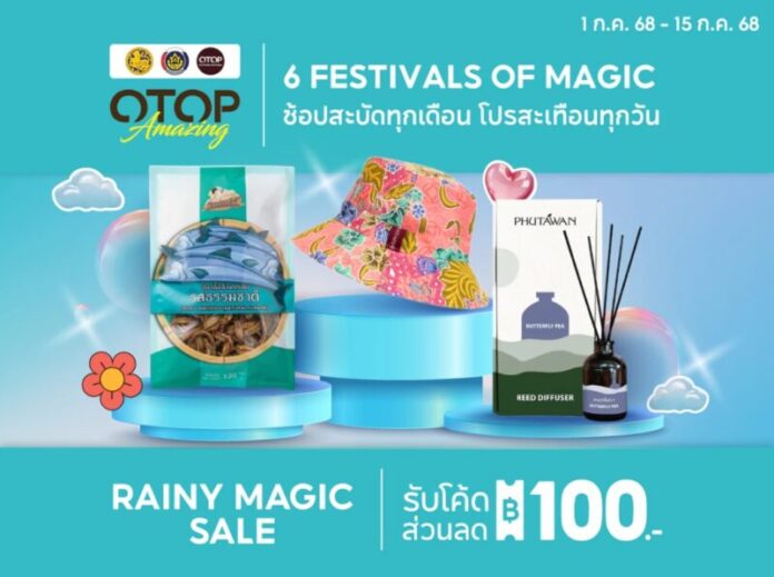 ทั้งนี้แคมเปญ “OTOP Amazing – Rainy Magic Sale” ซึ่งเป็นแคมเปญแรกของโครงการจัดขึ้นระหว่างวันที่ 1-31 กรกฎาคม 2568 บนช้อปปี้ ที่พร้อมรับโค้ดส่วนลดหลากหลายรูปแบบสูงสุดถึง 50% ผู้สนใจสามารถติดตามและสั่งซื้อได้ที่ https://shopee.co.th/otop หรือ พิมพ์คำว่า OTOP หรือ โอทอป ในช่องค้นหาในแพลตฟอร์ม ช้อปปี้ ได้ตลอดทุกวัน 24 ชม.