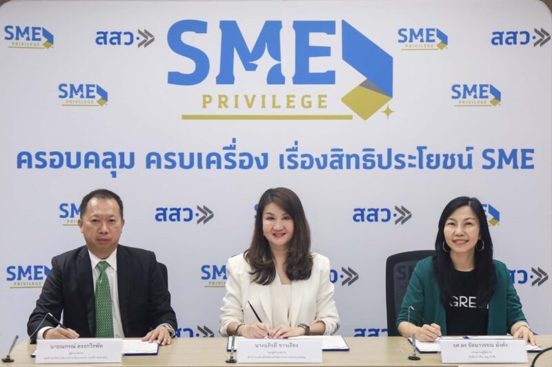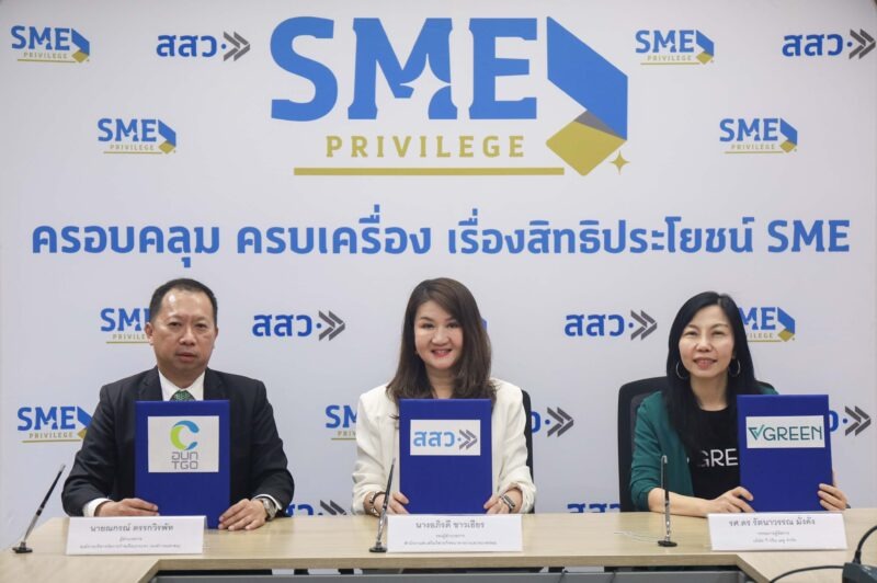 นางอภิรดี ขาวเธียร รองผู้อำนวยการสำนักงาน สำนักงานส่งเสริมวิสาหกิจขนาดกลางและขนาดย่อม (สสว.) เปิดเผยภายหลังการลงนามความร่วมมือกับ องค์การบริหารจัดการก๊าซเรือนกระจก (องค์การมหาชน) และ บริษัท วี กรีน เคยู จำกัด ว่า การลงนามความร่วมมือในวันนี้เกิดขึ้นภายใต้งานเผยแพร่สิทธิประโยชน์ให้แก่ MSME ที่รู้จักกันทั่วไปว่า “SME Privilege” ซึ่งมุ่งเน้นการให้สิทธิพิเศษแก่ผู้ประกอบการ 3 มิติหลัก คือ ส่วนลดสินค้าและบริการ ขยายช่องทางการตลาด และเชื่อมโยงแหล่งเงินทุน ผ่านการลงนามความร่วมมือ (MOU) กับหน่วยงานพันธมิตรทั้งภาครัฐและเอกชน โดยปัจจุบัน สสว. ทำความร่วมมือแล้วกว่า 50 หน่วยงาน และยังมีหน่วยงานพันธมิตรที่ต้องการให้สิทธิพิเศษแก่ผู้ประกอบการ แจ้งความประสงค์ขอทำความร่วมมือเพิ่มขึ้นอย่างต่อเนื่อง โดยขณะนี้อยู่ระหว่างพิจารณาสิทธิพิเศษต่างๆ ที่จะสามารถมอบให้ SME ได้ ขณะเดียวกันผู้ประกอบการก็ให้ความสนใจร่วมกิจกรรม SME Privilege เพิ่มมากขึ้นด้วย