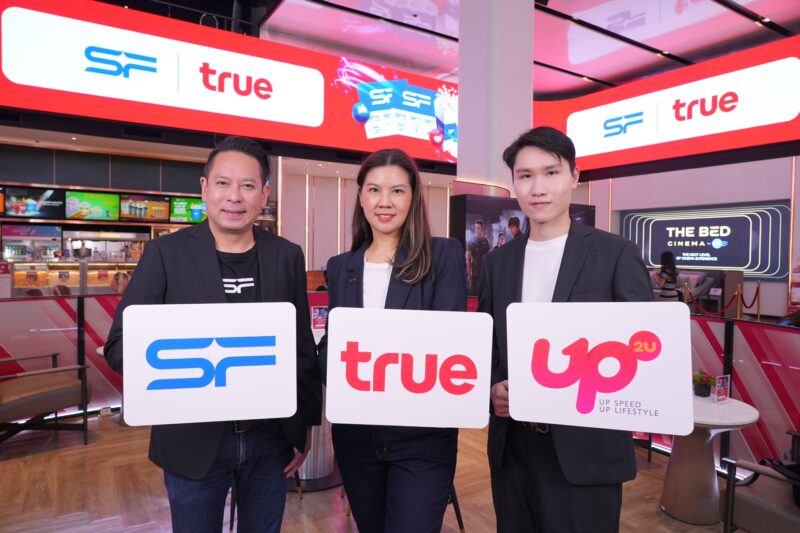 เดชา ธรรมชัยพิเนต ผู้อำนวยการฝ่ายพัฒนาธุรกิจ บริษัท เอส เอฟ คอร์ปอเรชั่น จำกัด (มหาชน) ร่วมกับ สรรค์พิจิตร เอี่ยมชีรางกูร หัวหน้าสายงานบริหารความสัมพันธ์และผสานสิทธิประโยชน์ลูกค้า และ พชร แหวนทองคำ หัวหน้าฝ่ายงานพัฒนาบริการด้านคอนเทนต์ดิจิทัลและการเงิน บริษัท ทรู คอร์ปอเรชั่น จำกัด (มหาชน) จับมือเดินหน้ามอบความสุขต่อเนื่อง กับประสบการณ์ชมภาพยนตร์ในโรงภาพยนตร์ระดับเวิลด์คลาส พร้อมฟินกับป๊อปคอร์นและเครื่องดื่ม จัดเต็มกับสิทธิพิเศษหลากหลายตลอดปี 2568 ที่โรงภาพยนตร์ในเครือ เอส เอฟ สาขาที่ร่วมรายการ