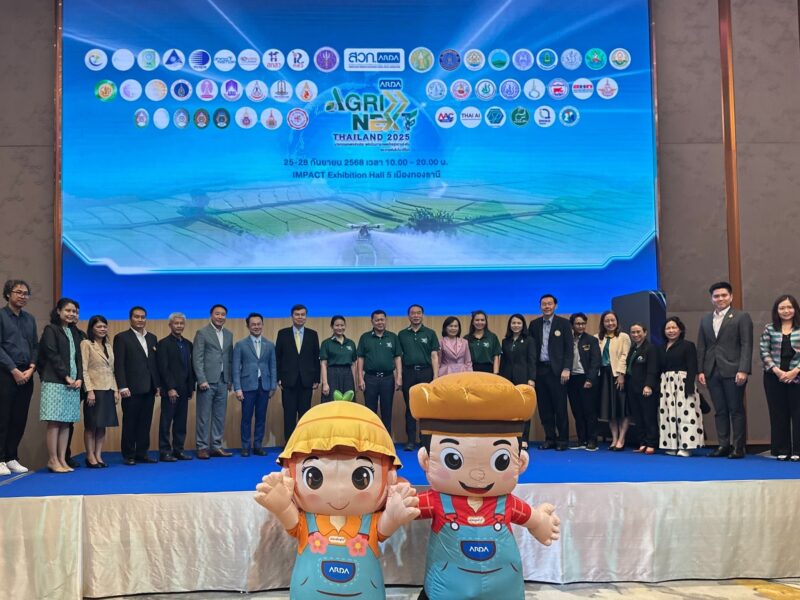 ดร.ธนิต ชังถาวร ที่ปรึกษาสำนักงานพัฒนาเศรษฐกิจจากฐานชีวภาพ พร้อมด้วย นางสาวณัฐฐิญา กงภูธร ผู้อำนวยการสำนักงานพัฒนาและจัดการองค์ความรู้ ได้เข้าร่วมงานแถลงข่าวการจัดงานประชุมวิชาการและจัดแสดงผลงานวิจัย “นวัตกรรมเกษตรอัจฉริยะพลิกโฉมการเกษตรไทยสู่ความยั่งยืนและการแข่งขันในเวทีโลก (AGRINEXT THAILAND 2025)” ณ ห้องริชมอนด์บอลรูม 1 โรงแรมแกรนด์ริชมอนด์ จังหวัดนนทบุรี โดยได้รับเกียรติจาก นายประยูร อินสกุล ปลัดกระทรวงเกษตรและสหกรณ์ และ ดร.วิชาญ อิงศรีสว่าง ผู้อำนวยการสำนักงานพัฒนาการวิจัยการเกษตร ร่วมกันแถลงข่าวงานประชุมวิชาการและจัดแสดงผลงานวิจัยดังกล่าว ซึ่งจะจัดขึ้นในวันที่ 25 – 28 กันยายน 2568 ณ อิมแพ็ค เอ็กซิบิชั่น ฮอลล์ 5 เมืองทองธานี จังหวัดนนทบุรี โดย BEDO เข้าร่วมจัดนิทรรศงานแสดงผลงานวิจัยในโซน ARDA SHOWCASE ภายใต้แนวคิด “แมลงโปรตีน BSF อนาคตใหม่อุตสาหกรรมอาหารสัตว์ไทย ลดต้นทุน สร้างรายได้ จัดการขยะอินทรีย์ รักษ์สิ่งแวดล้อม”