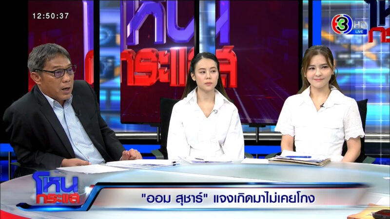 รายการ โหนกระแส วันที่ 19 ก.ย.ดำเนินรายการโดย “หนุ่ม กรรชัย กำเนิดพลอย” ผลิตในนามบริษัท ดีคืนดีวัน จำกัด ออกอากาศทุกวันจันทร์-ศุกร์ เวลา 12.35 น. ทางช่อง 3 กดหมายเลข 33 ได้สัมภาษณ์ ออม สุชาร์ ปมถูกกล่าวหาฮุบบริษัท 100 ล้าน ธุรกิจที่ทำร่วมกับ 2 หุ้นส่วน “พริม – ศสา” จนกลายเป็นประเด็นร้อนในสังคม โดยวันนี้ ออม ออกมาเผยข้อมูลฝั่งตัวเอง พร้อม อัง น้องแท้ๆ ของออม, ทนายติ่ง ทนายของออม และ ทนายแก้ว ดร.มนต์ชัย จงไกรรัตนกุล