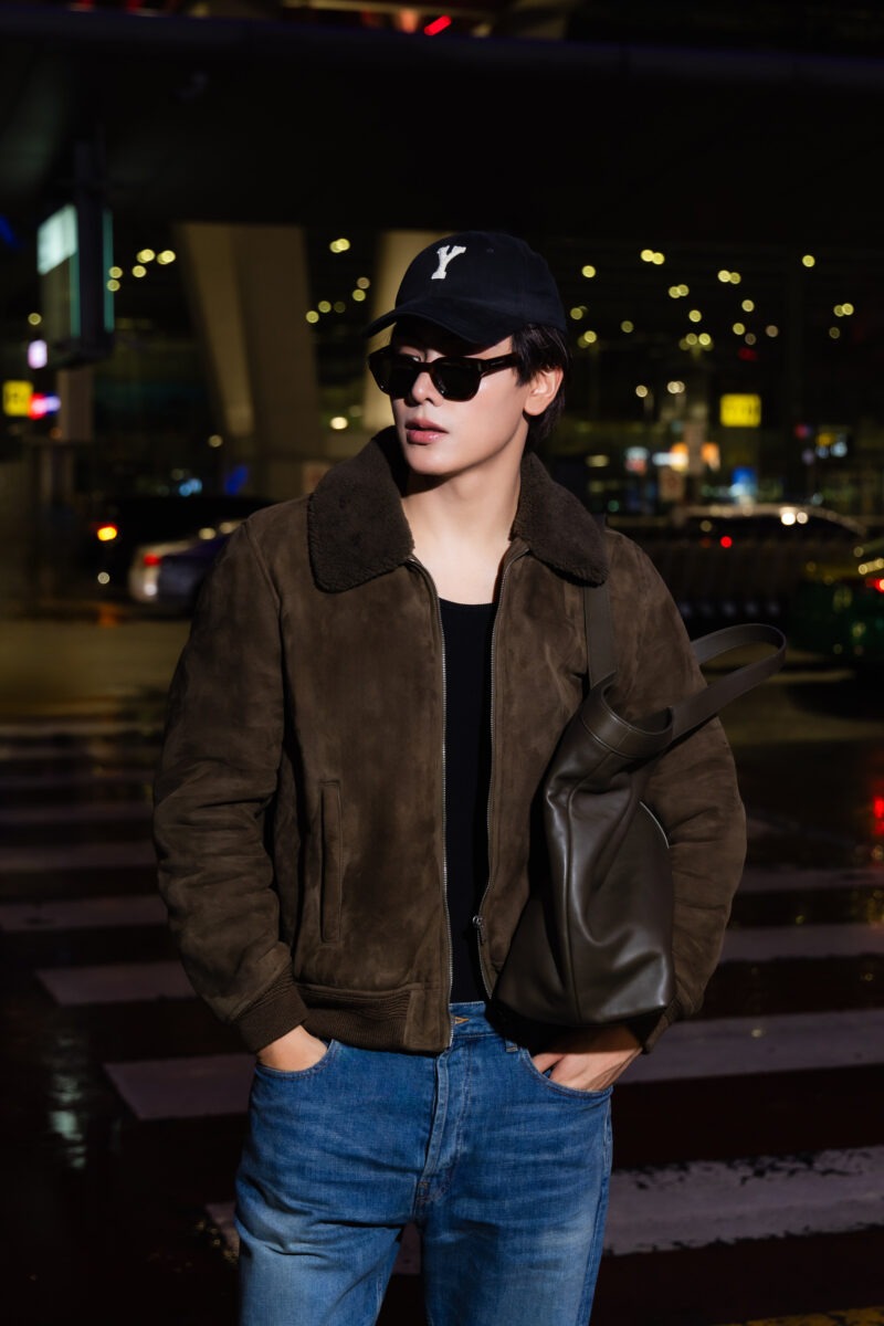 อุ่นเครื่องก่อนเดินทางด้วย แอร์พอร์ตลุคสุดเท่ ที่ผสมผสานความเรียบโก้ในสไตล์ Saint Laurent ได้อย่างลงตัว โดย จุง อาเชน เลือกสวม Bomber Jacket in Suede and Shearling (Kaki Foncé) คู่กับ HIGH-RISE JEANS IN HERITAGE VINTAGE BLUE DENIM (HERITAGE VINTAGE BLUE) สะพายกระเป๋า Y MAXI TOTE IN LEATHER (BLACK) แมตช์เข้ากับเครื่องประดับสุดคูลที่ช่วยขับลุคให้สมบูรณ์แบบ พร้อมออกเดินทางไปยังกรุงปารีส ประเทศฝรั่งเศส เพื่อเข้าร่วมชม Saint Laurent by Anthony Vaccarello Women’s Summer 2026 ในงาน Paris Fashion Week 2026 วันที่ 29 กันยายน 2568 นี้