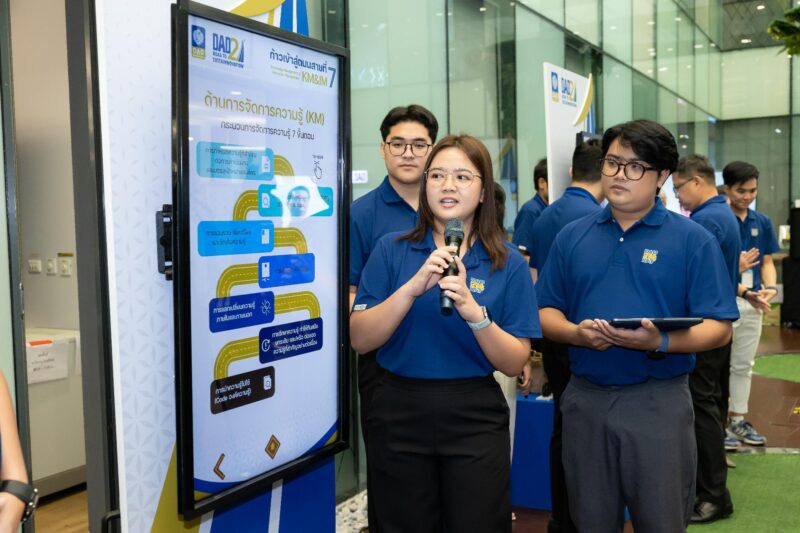 DAD มีการบริหารจัดการองค์ความรู้ภายในองค์กรอย่างเป็นระบบ พัฒนาฐานข้อมูลกลาง (Knowledge Management Platform) ที่รวบรวมองค์ความรู้จากทุกส่วนงาน สนับสนุนให้บุคลากรพัฒนาศักยภาพด้านการจัดการความรู้ ความคิดสร้างสรรค์และนวัตกรรม ผ่านการแลกเปลี่ยนเรียนรู้ การประกวดแนวคิดนวัตกรรม และการบ่มเพาะโครงการใหม่ที่สามารถต่อยอดสู่ธุรกิจจริง ทั้งยังผสานแนวคิด BCG Model ในการบริหารจัดการอาคารและพื้นที่ให้เป็นมิตรต่อสิ่งแวดล้อม ยกระดับบุคลากรให้เป็นมืออาชีพ ตามยุทธศาสตร์องค์กรที่วางไว้