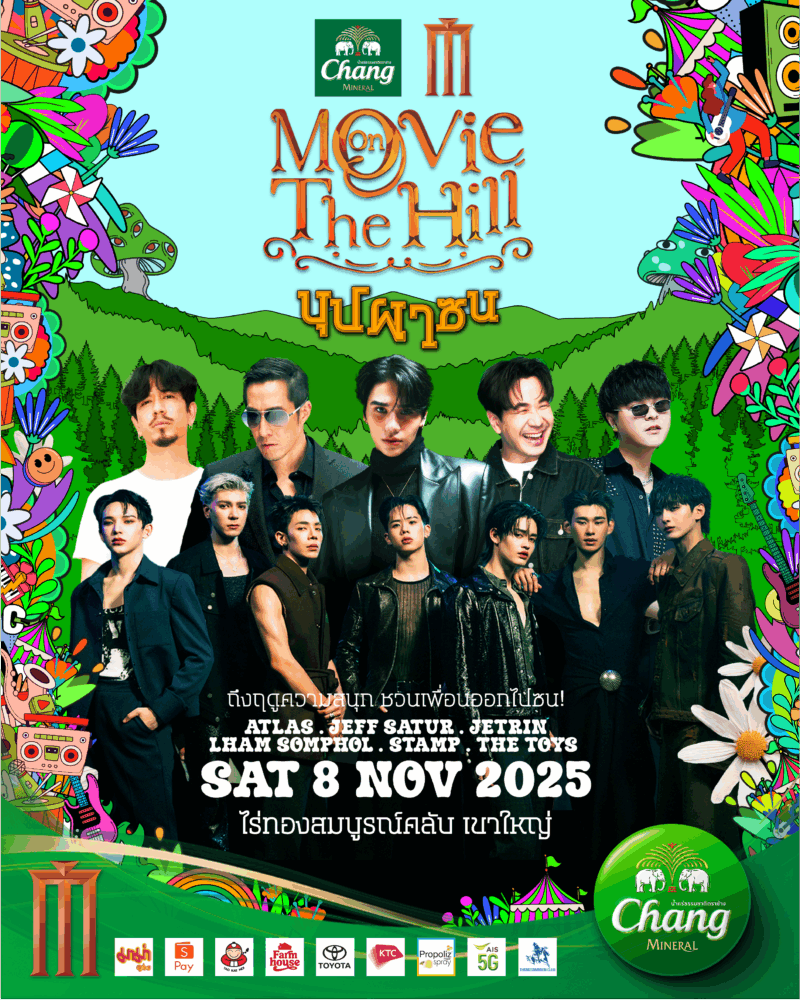 น้ำแร่ธรรมชาติตราช้าง ร่วมกับ บริษัท เมเจอร์ ซีนีเพล็กซ์ กรุ้ป จำกัด (มหาชน) เตรียมมอบประสบการณ์ความบันเทิงครั้งยิ่งใหญ่อีกครั้ง กับเทศกาลดนตรีและภาพยนตร์กลางแจ้งที่ครองใจแฟน ๆ มาโดยตลอด กับงาน “Movie on the Hill” ครั้งที่ 6 ซึ่งนอกจากจะได้สนุกกับเสียงเพลงและชมภาพยนตร์แล้ว ปีนี้ยังกลับมาในคอนเซ็ปต์สุดครีเอทีฟ “บุปผาซน” ที่สะท้อนพลังแห่งสีสัน และการปลดปล่อยความสนุก ความสุขอย่างเต็มที่ ชวนเพื่อน ๆ ออกมาซน กับบรรยากาศท่ามกลางขุนเขา ในวันเสาร์ที่ 8 พฤศจิกายน 2568 นี้ ณ ไร่ทองสมบูรณ์คลับ เขาใหญ่