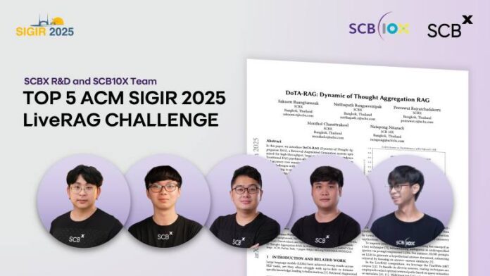 SCBX ประกาศความสำเร็จ คว้าอันดับ 5 จาก 40 ทีมทั่วโลก โดยเป็นทีมจากภาคอุตสาหกรรมที่ทำคะแนนสูงสุดในการแข่งขันพัฒนาระบบ Retrieval-Augmented Generation (RAG) ภายในงาน ACM SIGIR 2025 งานประชุมวิชาการด้าน Information Retrieval อันดับหนึ่งของโลกที่จัดต่อเนื่องมากว่า 48 ปี