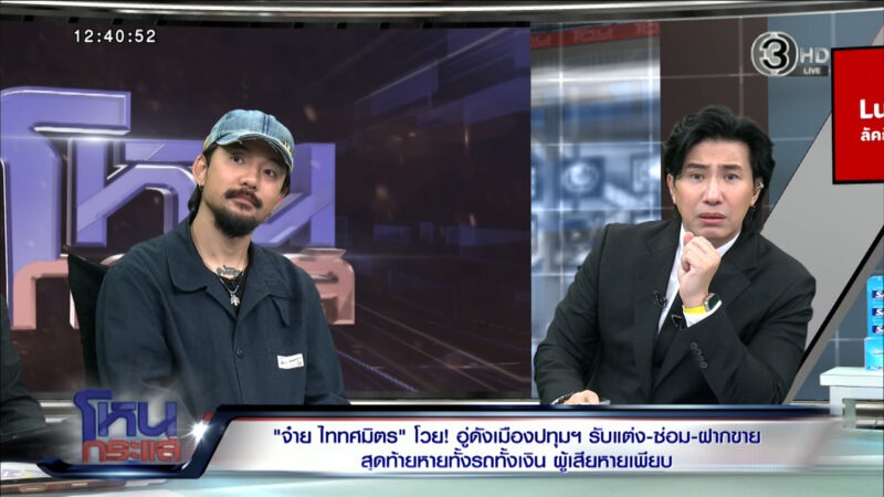 กรณีที่ “จ๋าย ไททศมิตร” นักร้องชื่อดัง เดินหน้าทวงความเป็นธรรม หลังตกเป็นเหยื่ออู่ซ่อมรถชื่อดังเมืองปทุมฯ รับแต่ง ซ่อม ฝากขาย สุดท้ายหายทั้งรถ หายทั้งเงิน แจ้งความฉ้อโกงแล้ว แต่ปัจจุบันไม่รู้ว่ารถตนไปอยู่ที่ไหน พบผู้เสียหายโผล่เพียบ ร่วม 40 ราย