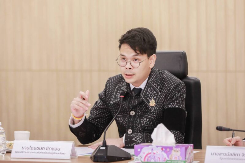 นายไชยชนก ชิดชอบ รัฐมนตรีว่าการกระทรวงดิจิทัลเพื่อเศรษฐกิจและสังคม (ดีอี) เป็นประธานการแถลงข่าวความคืบหน้ามาตรการบรรเทาผลกระทบให้แก่กลุ่มผู้ขับขี่รถรับจ้างผ่านแอปพลิเคชัน พร้อมด้วยนางสาวมัลลิกา จิระพันธุ์วาณิช รัฐมนตรีช่วยว่าการกระทรวงคมนาคม และหน่วยงานที่เกี่ยวข้อง