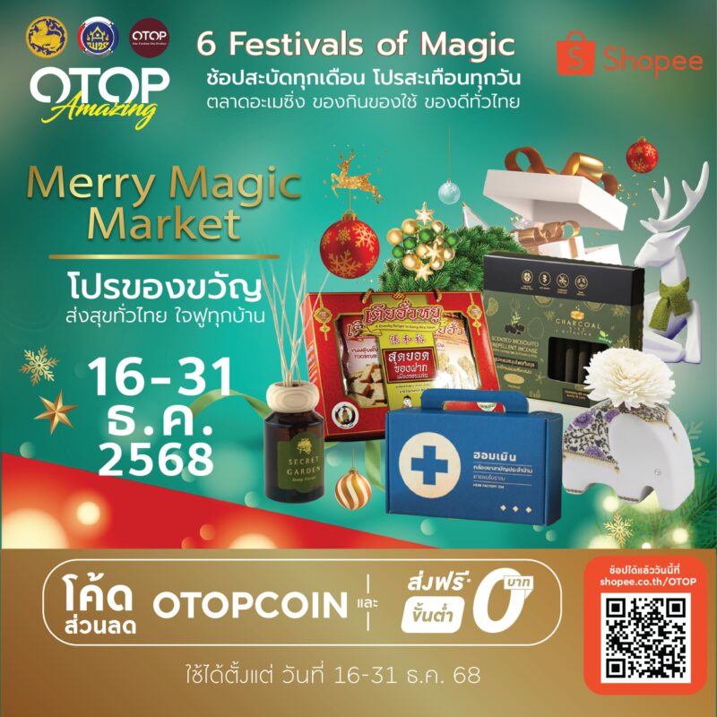 พช. ชวนช้อปโอทอปออนไลน์ “Merry Magic Market – โปรของขวัญ ส่งสุขทั่วไทย ใจฟูทุกบ้าน” มหกรรมส่งความสุขตลอดเดือนธันวาคม 2568