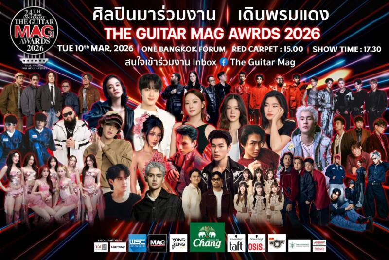 การกลับมาอีกครั้งกับการประกาศรางวัลของคนดนตรี งานเกียรติยศของคนดนตรีอย่างแท้จริง เตรียมตัวเฉิดฉายไปพร้อมกันใน THE GUITAR MAG AWARDS 2026 : REAL AWARDS FOR REAL ARTIST “งานประกาศรางวัลทางดนตรีที่ยิ่งใหญ่ที่สุดในเมืองไทย” สุดยอดงานประกาศรางวัลเพียงหนึ่งเดียว ที่ยิ่งใหญ่ และอลังการที่สุด งานเดียวที่รวมศิลปิน และคนดนตรีทั้งเบื้องหน้า และเบื้องหลัง จากทุกค่ายเพลง ทุกแนวดนตรีมากที่สุดในเมืองไทย พร้อมร่วมฉลองครบรอบปีที่ 24 ของ นิตยสาร THE GUITAR MAG และร่วมเฉลิมฉลอง “15TH ANNIVERSARY CELEBRATIONS” ไปด้วยกันในวันอังคารที่ 10 มีนาคม 2569 ณ ONE BANGKOK FORUM