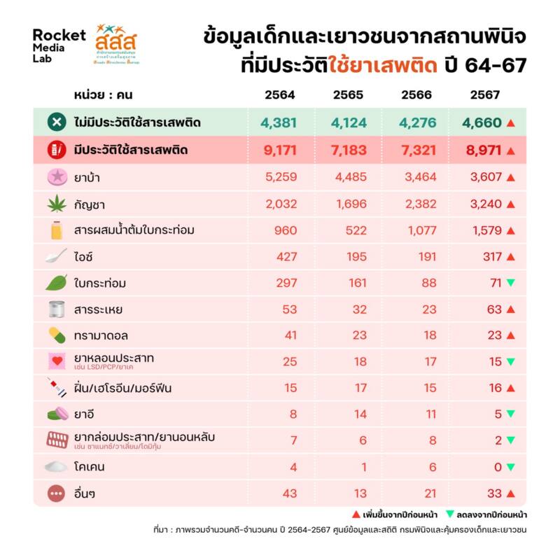 สสส. จับมือ Rocket Media Lab เปิดรายงานข้อมูลเยาวชนกับปัญหายาเสพติด ชี้คดีเสพพุ่งสูง 77.44% เตือน “ยาบ้า-กัญชา-กระท่อม” เข้าถึงง่ายหลังปลดล็อก หวั่นทรัพยากรสาธารณสุขไม่เพียงพอรองรับผู้ป่วย หวังคืนเยาวชนให้กลับสู่สังคมอย่างมีคุณภาพ