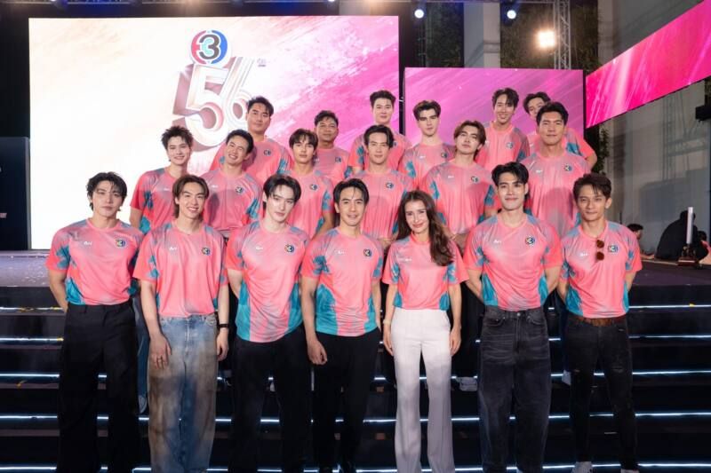 ต่อด้วยมหกรรมความบันเทิ งฉลองครบรอบ 56 ปี ช่อง 3 ที่ทุกคนรู้กันดีว่าต้องมีกั บแมตช์ฟาดแข้ง และปีนี้ได้รับการสนับสนุนเสื้ อกีฬาและลูกฟุตตบอลจาก ARI ก่อนจะมาแรนด้อมเลือกสี ซึ่งปีนี้แบ่งเป็นสีชมพูพั้นซ์ กับสีเหลืองขมิ้น หลังจากแรนด้อมเลือกกัปตันและผู้ จัดการทีมเรียบร้อย ก็ต้องเซอร์ไพรส์ไม่หยุด เมื่อนางเอกสาว เชอรี่ เข็มอัปสร มารับหน้าที่เป็นผู้จัดการครั้ งแรก และในที่สุดปีนี้สีชมพูพั้นซ์ เป็นทีมของ กัปตันโป๊ป ผู้จัดการทีม แอน ทองประสม และ เก้า นพเก้า พร้อมด้วย เจมส์ มาร์, ภณ ณวัสน์, สมิธ ภาสวิชญ์, แก๊ป จักริน, จ็อบ ธัชพล, เซ็นต์ ศุภพงษ์, อู๋ กิตติภณ, อ๋อง สิทธานต์, เฟรนด์ พีระกฤตย์, แชมป์ ชนาธิป, เฟิสท์ เอกพงศ์, ทาฆิ, ดีแลน ไบร์อันท์, คิง ณภัทร, แจ็ค จักรพันธ์ ฯลฯ ทางฝั่งสีเหลืองขมิ้น ได้แก่ กัปตันเกรท ผู้จัดการทีม เชอรี่ และ กลัฟ คณาวุฒิ พร้อมด้วย มีน พีรวิชญ์, ไมกี้ ปณิธาน, ริว วชิรวิชญ์, จูเนียร์ กาจบัณฑิต, ฟลุ๊คจ์ พงศภัทร์, ดีเจพุฒิ, สิงโต สกลรัฐ ฯลฯ เตรียมาส่งเสียงเชียร์ และมาร่วมเป็นส่วนหนึ่ งของความยิ่งใหญ่ ในวันเสาร์ที่ 4 เมษายนนี้ ณ สนามศุภชลาศัย หรือรับชมถ่ายทอดสด ตั้งแต่เวลา 18.00 – 22.30 น. ผ่านหน้าจอ ช่อง 3 และทั้งหมดนี้คือความพิเศษใหม่ๆ และเซอร์ไพรส์ที่ช่อง 3 เตรียมมามอบความสุขให้แฟน ๆ แบบจุใจเต็มอิ่มตลอดปี ดูทีวีกด33 ดูมือถือกด3Plus