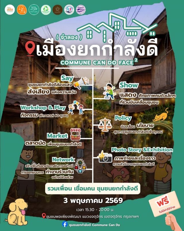 กิจกรรมจัดที่: ชุมชนพอเพียงพัฒนา แขวงจตุจักร เขตจตุจักร กทม. 3 พฤษภาคม 2569 | 16.30 – 20.00 น.