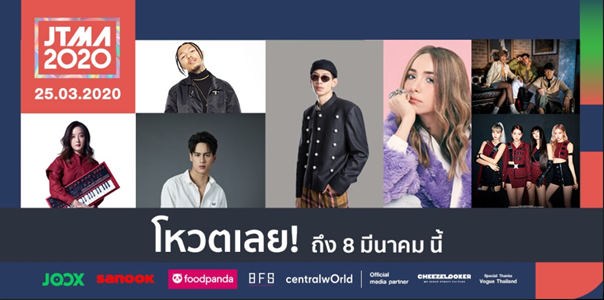 งานประกาศรางวัลทางดนตรี JTMA 2020 รอบตัดสิน จะจัดขึ้นในวันพุธที่ 25 มีนาคม 2563 ณ ลานหน้าห้างสรรพสินค้าเซ็นทรัลเวิลด์ โดยในงานนี้จะมีการเดินพรมเขียว เปิดตัวศิลปินที่มาร่วมงาน, โชว์สุดอลังการ และการประกาศรางวัลบนเวที พร้อมปิดท้ายด้วย After party จาก Swim Deep วงอินดี้จาก Birmingham ที่กำลังเป็นที่จับตามองในวงการอินดี้ร็อคจากฝั่งอังกฤษในเวลานี้ โดยปาร์ตี้สุดเอ็กซ์คลูซีฟในครั้งนี้ เปิดพื้นที่ให้เฉพาะศิลปินและกลุ่มคนในวงการบันเทิงเท่านั้น