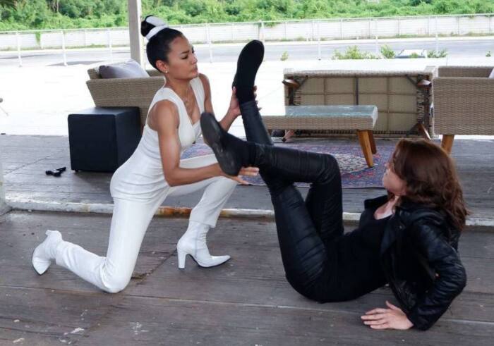ทีมงานปักหลักถ่ายทำกันที่ย่านพระราม 9 หลังจากถ่ายฉากอื่นๆ ในช่วงเช้าเสร็จเรียบร้อย ก็มาถ่ายเจาะฉากบู๊ของสองสาวกันต่อในช่วงบ่าย โดยทั้ง “เชียร์” และ “นุ้ย” ทุ่มสุดตัว ขอเล่นซีนนี้ด้วยตัวเอง ก่อนถ่ายทำ ทั้ง “เชียร์” และ “นุ้ย” จึงมีการซักซ้อมคิวบู๊กันอยู่พักใหญ่ โดยมีครูใจ (สมใจ จันทร์มูลตรี) ผู้กำกับคิวบู๊ และดับเบิ้ลสตั๊นของสาวเชียร์คอยประกบและสอนชั้นเชิงการต่อสู้อย่างใกล้ชิด งานนี้ผู้กำกับฯ เฉลิม วงค์พิมพ์ ไม่อยากให้นักแสดงเกิดการพลาดคิว จึงแยกถ่ายเป็นคัทๆ ก่อนถ่ายจริง สาวเชียร์ นักแสดงรุ่นน้องยกมือไหว้เพื่อเป็นการขอโทษ ขอโพย ด้านสาวนุ้ยก็บอกกับเชียร์ว่า “ใส่เต็มที่ไม่ต้องยั้ง” สิ้นเสียงแอ็คชั่นของผู้กำกับฯ ทั้งสองคนก็เริ่มปะทะกันทันที หมัดต่อหมัดซัดกันนัว มือไม่พอ ยังสู้กันต่อด้วยขา ทั้งหนีบ ทั้งถีบ ทั้งรับทั้งส่งในแบบพลิ้วด้วยกันทั้งคู่ เรียกได้ว่าถูกใจผู้กำกับฯ เห็นภาพประกอบว่าเด็ดแล้ว ในหนังจะเด็ดขนาดไหน รอติดตามได้ทางช่อง MONO29 รับประกันได้ว่ามันแน่!!!