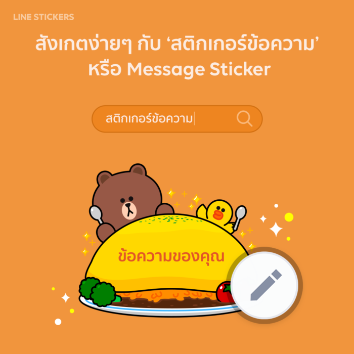 LINE STICKERS ต่อยอดความสนุกต่อเนื่อง หลังจากเคยปล่อยสติกเกอร์เติมคำออกมาแล้ว และได้รับการตอบรับที่ดีจากผู้ใช้งาน มาคราวนี้ LINE STICKERS ได้เพิ่มความสนุกเข้าไปอีกขั้นกับ สติกเกอร์ข้อความ หรือ Message Sticker ที่จะมาเพิ่มสีสันให้ห้องแชทของทุกคนสดใสยิ่งขึ้น ด้วยข้อความสนุกๆ ที่เราสามารถคิด และเลือกเติมได้เอง เพื่อบ่งบอกความเป็นตัวเองได้อย่างเต็มที่ อีกทั้งยังมีความพิเศษอยู่ที่