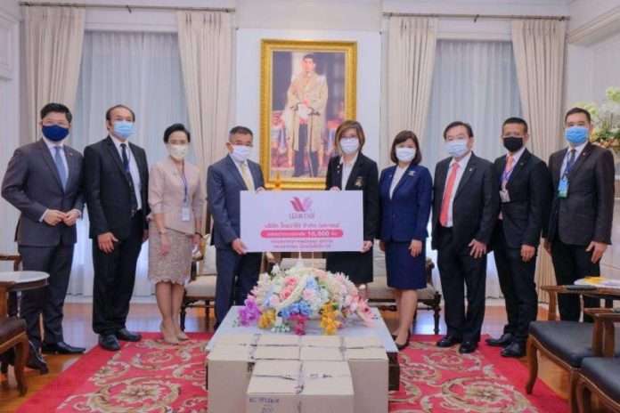 นางสาววราภรณ์ กุลสวัสดิ์ภักดี (ที่ 5 จากขวา ) กรรมการอิสระ บริษัท ไทยวาโก้ จำกัด (มหาชน) ในเครือสหพัฒน์ พร้อมด้วยนางอรอนงค์ แสงพุ่มพงษ์ ( ที่ 4 จากขวา) กรรมการบริษัท ไทยวาโก้ จำกัด (มหาชน) และผู้พิพากษาสมทบในศาลทรัพย์สินทางปัญญาและการค้าระหว่างประเทศกลาง ส่งมอบหน้ากากอนามัยวาโก้ จำนวน 10,000 ชิ้น ให้กับนายไสลเกษ วัฒนพันธุ์ ( ที่ 4 จากขวา) ประธานศาลฎีกา และ นางเมทินี ชโลธร (ที่ 3 จากซ้าย) รองประธานศาลฎีกา เพื่อนำไปแจกจ่ายให้กับบุคลากรของศาลยุติธรรม ประชาชน คู่ความ และพยานที่มาศาลแต่ไม่มีหน้ากากสวมใส่ ป้องกันการแพร่ระบาดของโรคโควิด-19 ซึ่งหน้ากากอนามัยดังกล่าวผลิตจากผ้าสเปเซอร์ เนื้อผ้าผลิตจากเส้นใยไนลอนขนาดเล็กระดับไมโครไฟเบอร์ และมีส่วนผสมของสเปนเด็กซ์หลอมละลายยึดติดกับโครงสร้างผ้า ทำให้หน้ากากมีความอ่อนนุ่ม ยืดหยุ่น กระชับ ช่วยป้องกันการกระจายของเชื้อไวรัสโควิด-19 และมีประสิทธิภาพในการกรองฝุ่น PM 2.5 สามารถซักทำความสะอาดและนำกลับมาใช้ซ้ำได้ตลอดอายุการใช้งาน