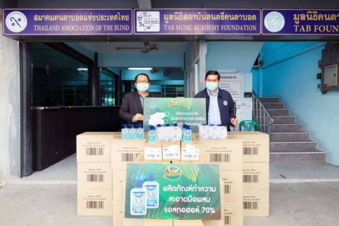 นายสุชาติ ระมาศ รองกรรมการผู้จัดการใหญ่ธุรกิจค้าปลีก บริษัท ปตท. น้ำมันและการค้าปลีก จำกัด (มหาชน) (โออาร์) มอบหน้ากากผ้ามัสลิน คาเฟ่ อเมซอน จำนวน 10,000 ชิ้น และ ผลิตภัณฑ์ทำความสะอาดมือผสมแอลกอฮอล์ 70% จำนวน 180 ขวด แก่ นายพิทยา ศรีโกตะเพชร ที่ปรึกษาสมาคมคนตาบอดแห่งประเทศไทย เพื่อจัดสรรให้ผู้พิการทางสายตาทั่วประเทศที่เป็นสมาชิกของสมาคม สำหรับใช้ในการป้องกันและลดความเสี่ยงจากการติดโรคโควิด-19 ต่อไป