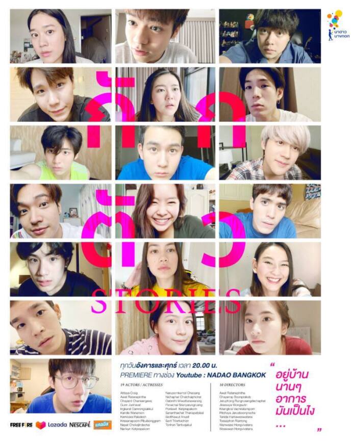 นาดาว บางกอก ยังคงเดินหน้าสร้างสรรค์ผลงานใหม่ๆ ให้ได้ชมกันอย่างสม่ำเสมอ ล่าสุด เปิดโปรเจกต์ หนังสั้น VDO CALL “กักตัว Stories” เป็นการรวมหนังสั้น 10 เรื่อง จาก 10 ผู้กำกับ และ 19 นักแสดง ที่มาถ่ายทอดผลงานให้ได้ชมกันตลอดเดือน พฤษภาคม และ มิถุนายน นี้
